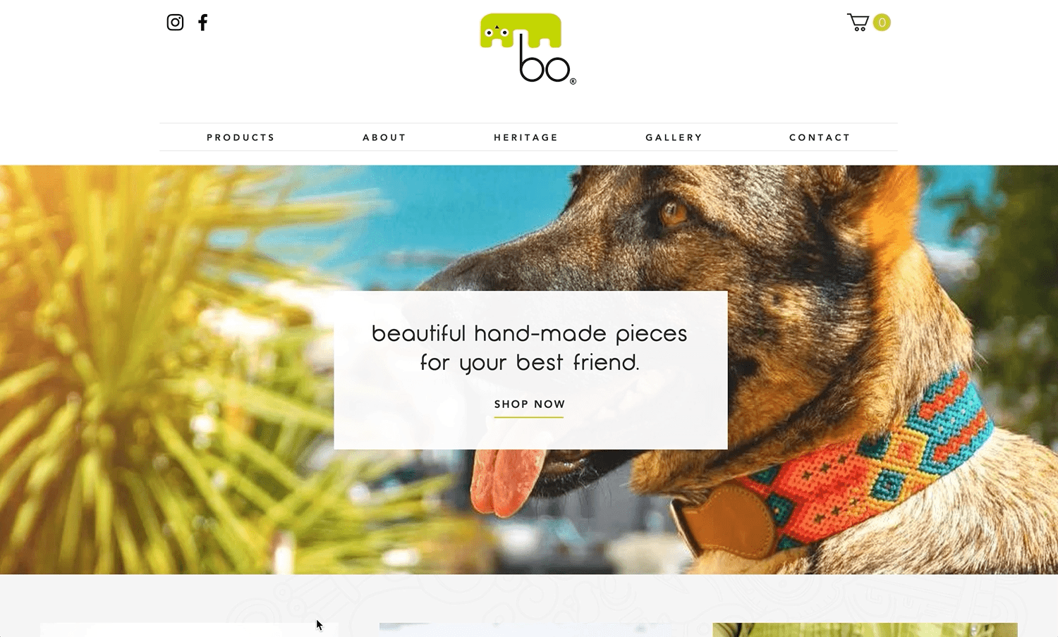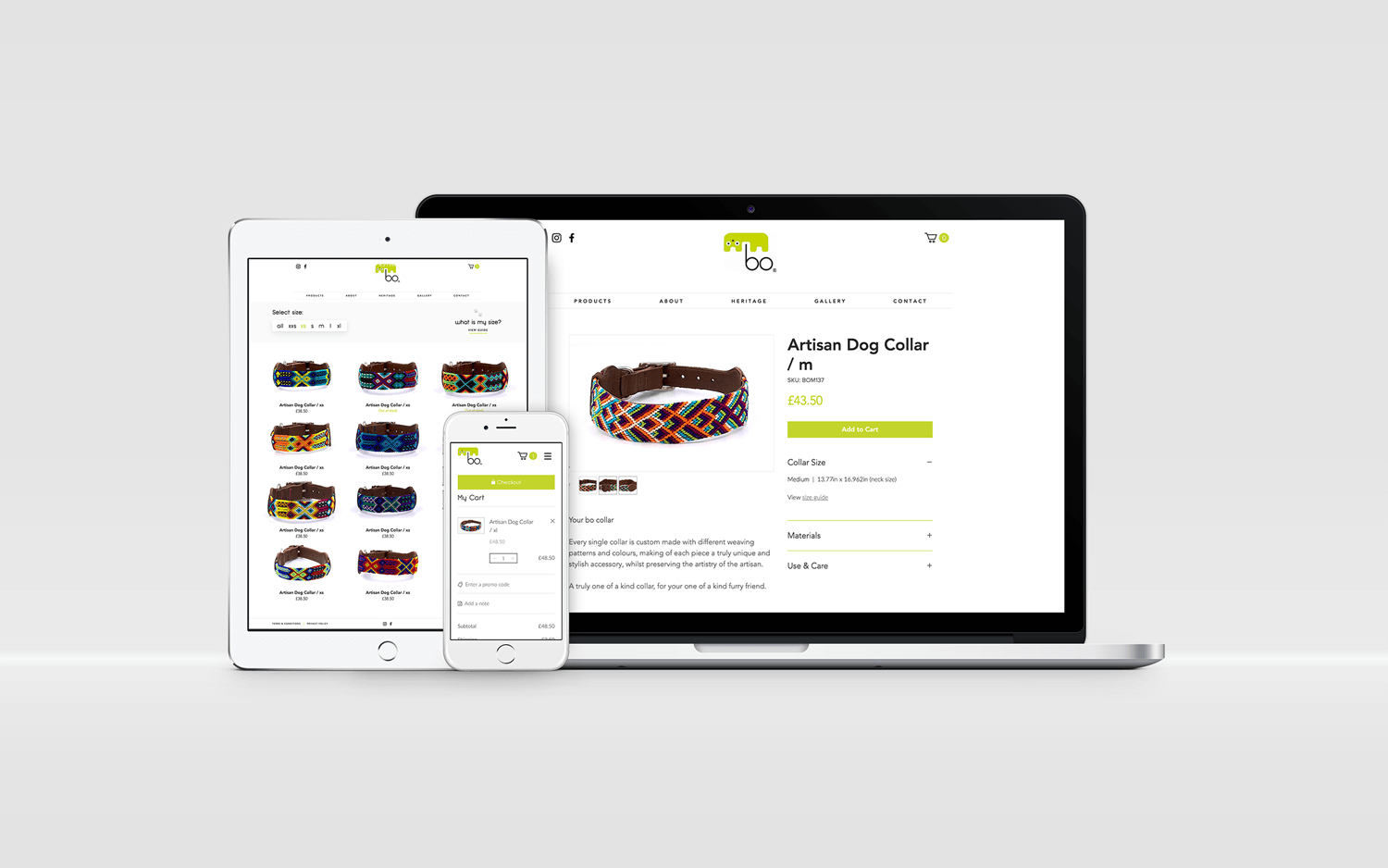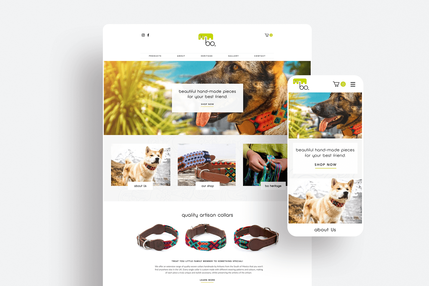 BO Collars is a premium Mexican-British fair-trade partnership which combines craftsmanship and tradition with quality lead design. Our objective with the design was to capture the essence of their brand and ethos throughout the design and uses visual pieces of Mexican heritage and vibrant imagery to bring the website to life.